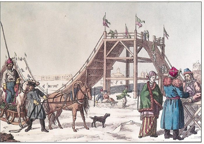 Они были главным развлечением праздничной ярмарки, но непростым. Исследователь Анна Некрылова в книге «Русские народные городские праздники, увеселения и зрелища» рассказывает, что горы достигали высоты 10-12 метров – как пятиэтажный дом, не имели ограждений (только перила наверху), и с них одновременно скатывались десятки человек. В городах строили деревянные горки, которые заливали водой. Катались на всем – от соломенных ледянок до деревянных корыт. Во время катания девушки и парни могли целоваться при всех и это не порицали.