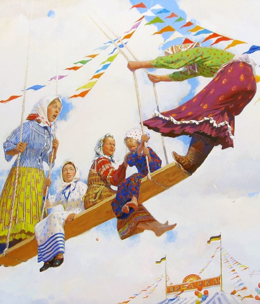 Раньше считалось, что подъем на качелях обладает магической силой и несет плодородие. А если юноша и девушка катались вместе, то их ждали крепки чувства и счастливый брак.