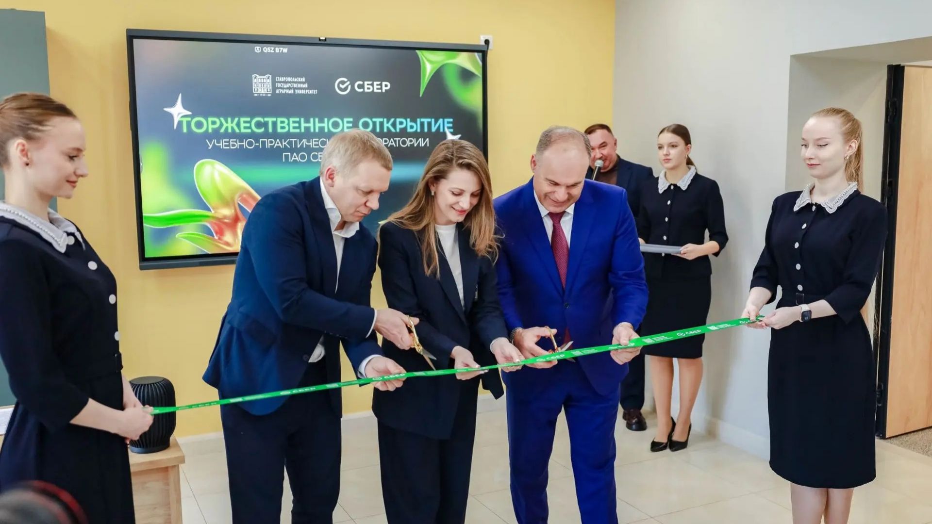 В Ставропольском государственном аграрном университете состоялось торжественное открытие учебно-практической лаборатории ПАО «Сбербанк» – современного образовательного пространства, созданного в рамках многолетнего стратегического партнёрства университета и одного из крупнейших технологических лидеров страны. Новый формат обучения объединяет академическую экспертизу вуза и передовые цифровые решения Сбера, формируя принципиально новые возможности подготовки конкурентоспособных специалистов для экономики будущего.