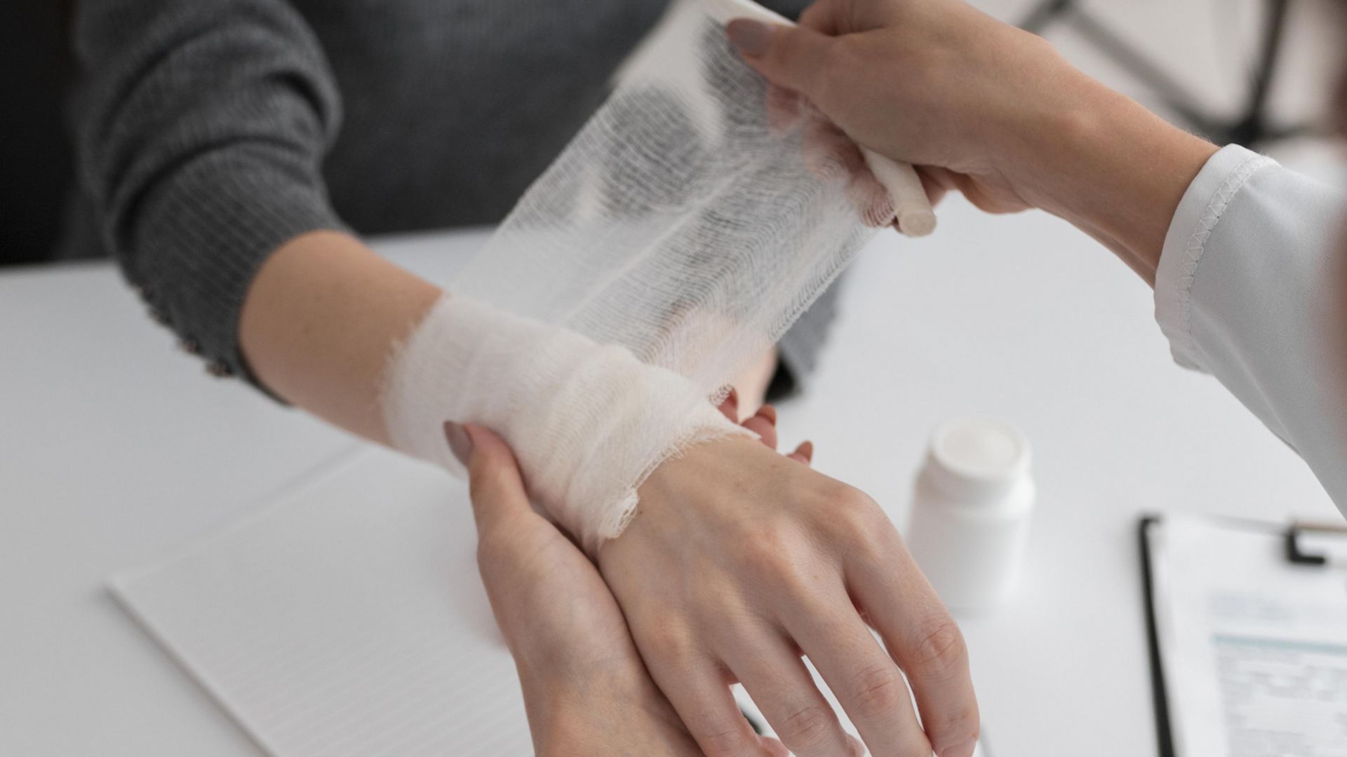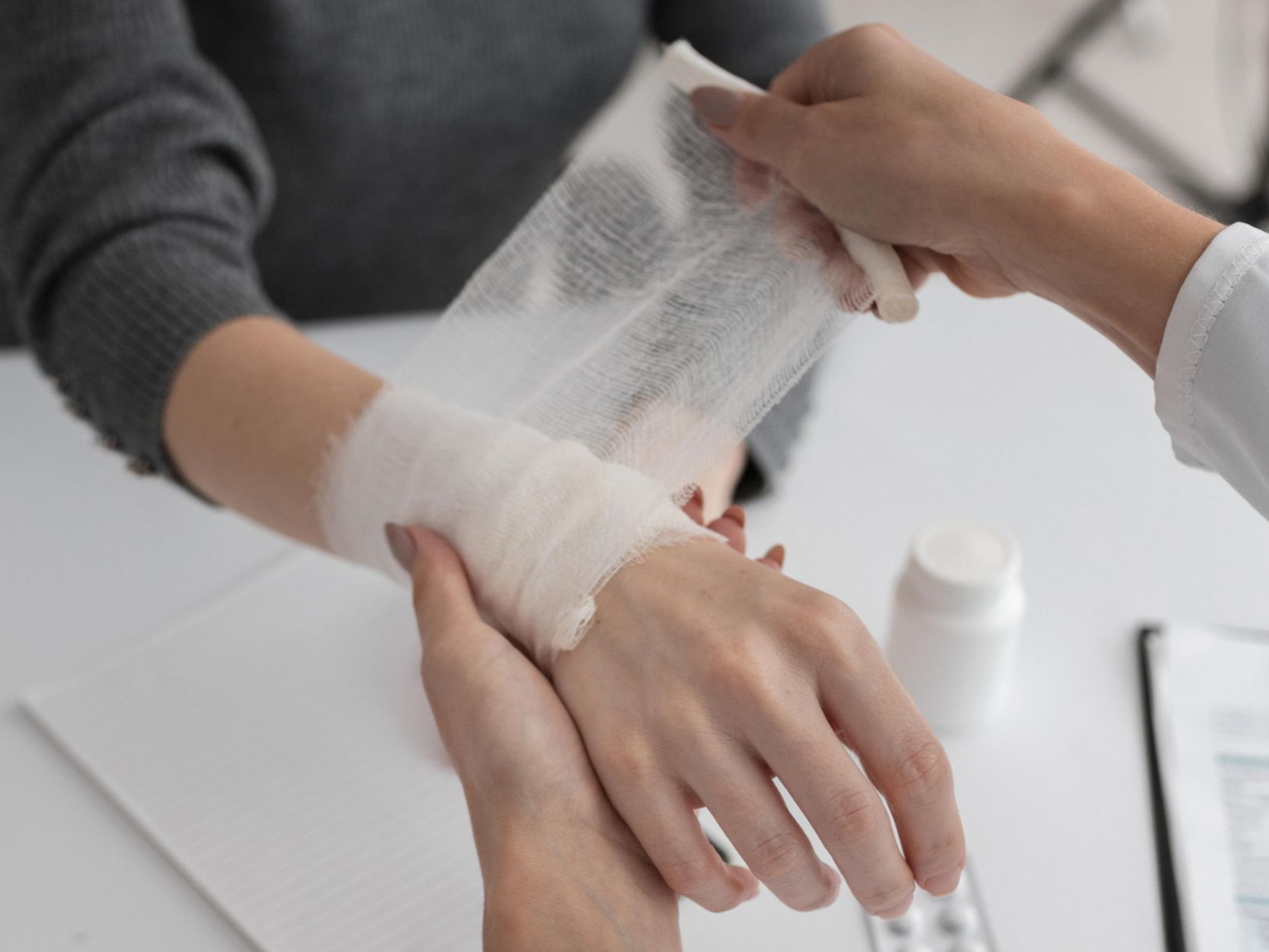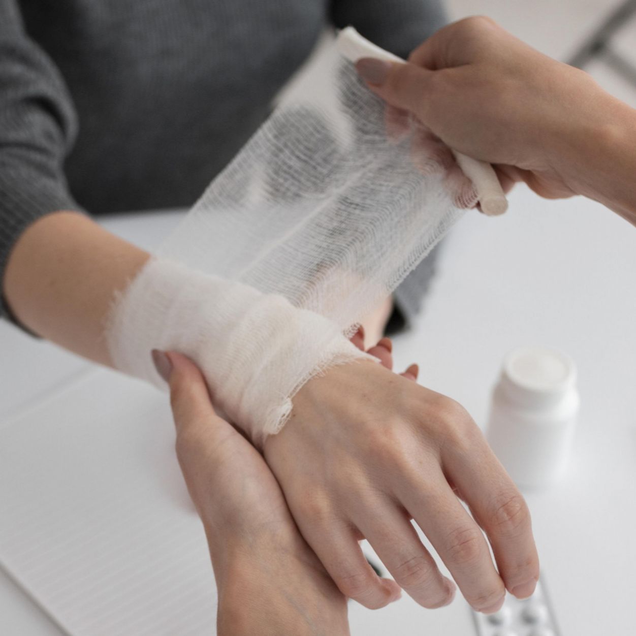 Следом необходимо наложить повязку на поврежденную область. Для этого подойдут стерильные бинты, салфетки или чистая проглаженная ткань без ворса.
