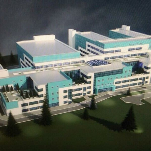 Новое стационарное отделение будет рассчитано на 376 коек, дневной стационар – на десять мест, а поликлиника сможет принимать 600 человек в смену.