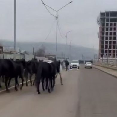 В Кисловодске остановили очередной табун лошадей. Около 20 животных прогуливались без хозяина возле недавно благоустроенной школы № 22 и детского сада № 10.
