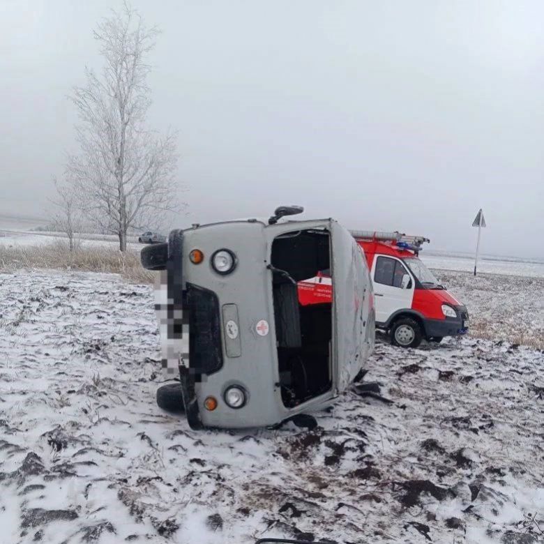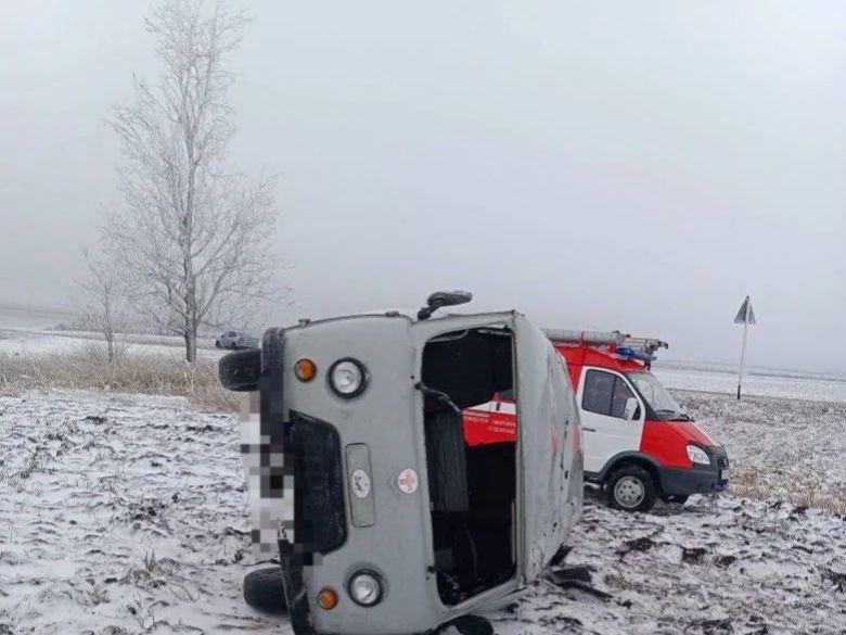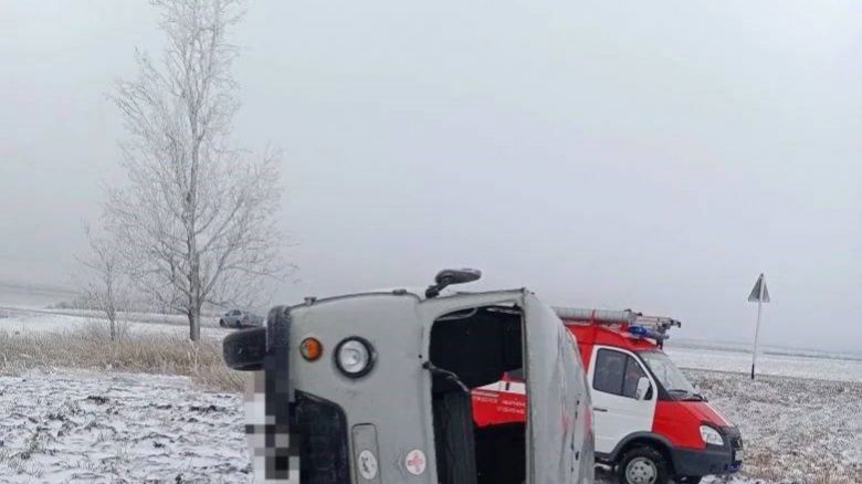 Утром 24 января в районе села Нагутского в Минераловодском округе случилось ДТП. Водитель скорой помощи не справился с управлением, УАЗ перевернулся.