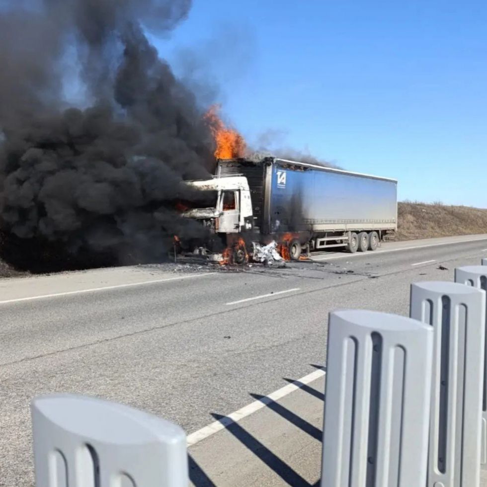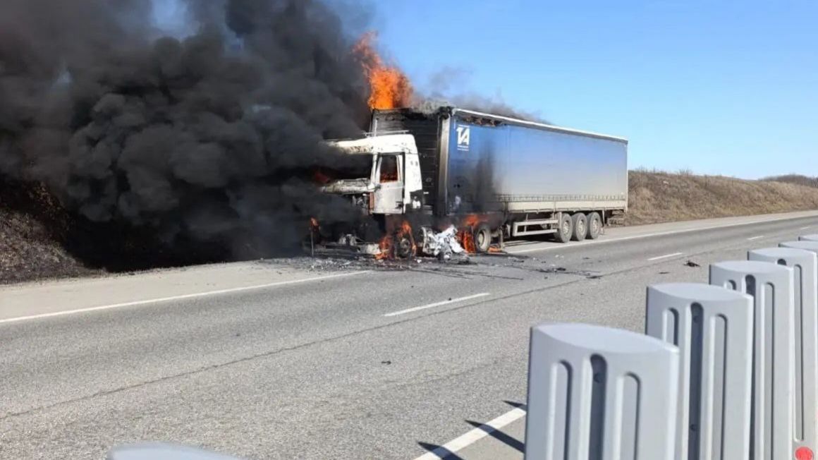 Около 11:45 в пятницу, 30 января, на 26 км федеральной трассы «Минеральные Воды – Кисловодск» загорелся моторный отсек седельного тягача «МАЗ». Пламя перекинулось на полуприцеп.