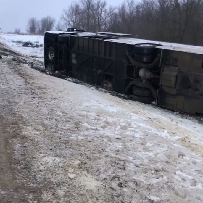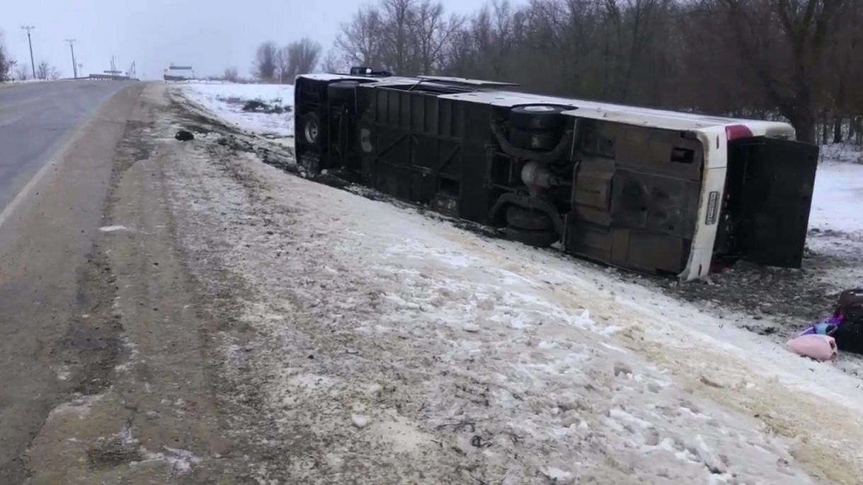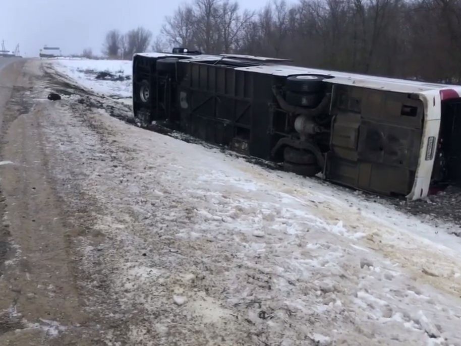 Ранним утром 2 февраля в Ипатовском округе Ставропольского края произошла тяжелая авария. Автобус маршрута Севастополь – Астрахань съехал в кювет и опрокинулся на трассе возле села Тахта. По предварительной информации ГИБДД, 52-летний водитель не справился с управлением в сложных погодных условиях.