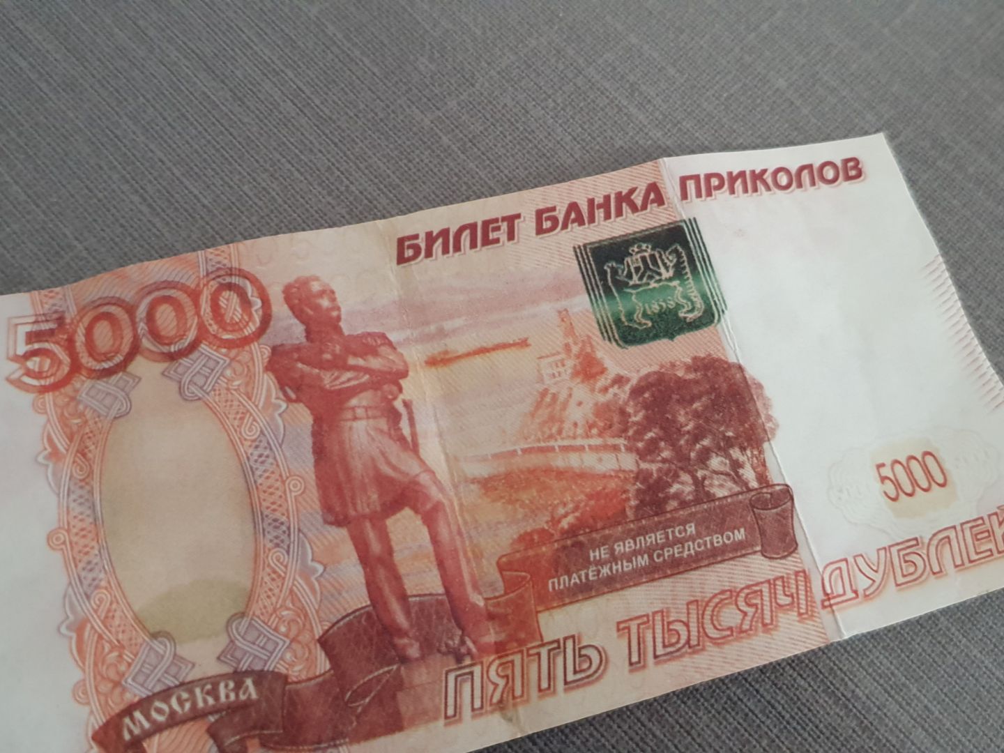 Она пришла к нему домой и предложила разменять пятитысячную купюру, пообещав в качестве благодарности за помощь оставить ему две тысячи рублей. Мужчина согласился, а после ухода гостьи заметил на банкноте надпись «билет банка приколов».