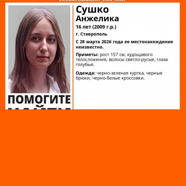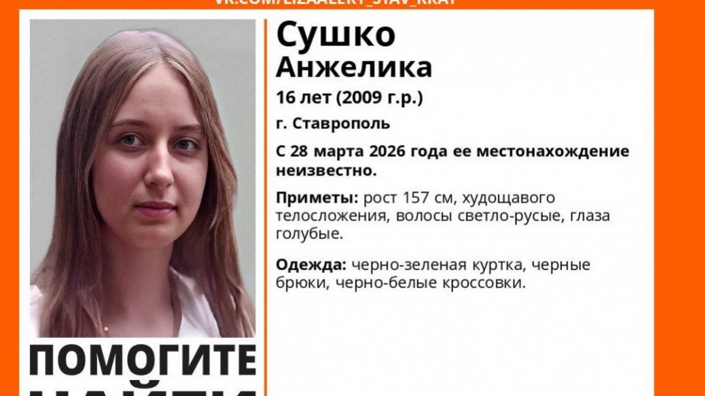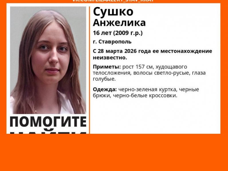 28 марта в Ставрополе потерялась 16-летняя Анжелика Сушко. Местонахождение подростка до сих пор неизвестно, сообщили в соцсетях регионального поисково-спасательного отряда.
