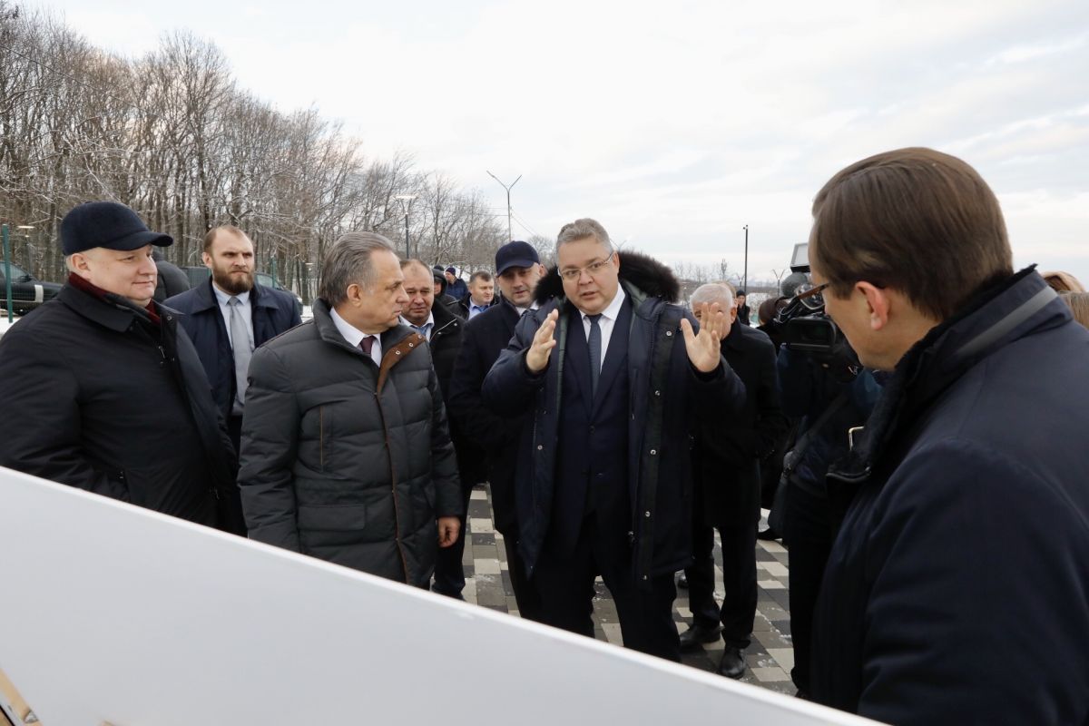 В Минеральных Водах Виталий Мутко вместе с министром РФ по делам Северного Кавказа Сергеем Чеботарёвым, губернатором Ставрополья Владимиром Владимировым осмотрел территорию городского парка, где построены детская площадка, фонтан, летняя сцена, входная группа, обновлено освещение, дорожки, сделана парковка. Следующим объектом реконструкции станет городской ДК.