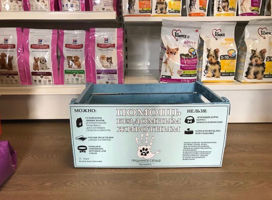 Международный день бездомных животных принято отмечать в третью субботу августа. Волонтеры из Кисловодска не остались в стороне. Участники проекта «Преданное сердце» заранее установили специальные ящики для корма в кисловодских зоомаркетах. Неравнодушные могли оставить в них свои пожертвования.