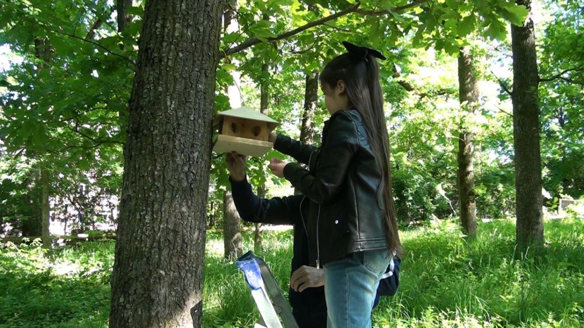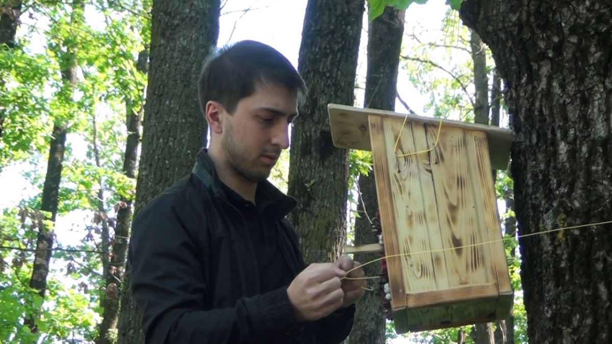 Чтобы не нарушать целостность коры деревьев, жилье для птиц прикрепляли к стволу без использования гвоздей.