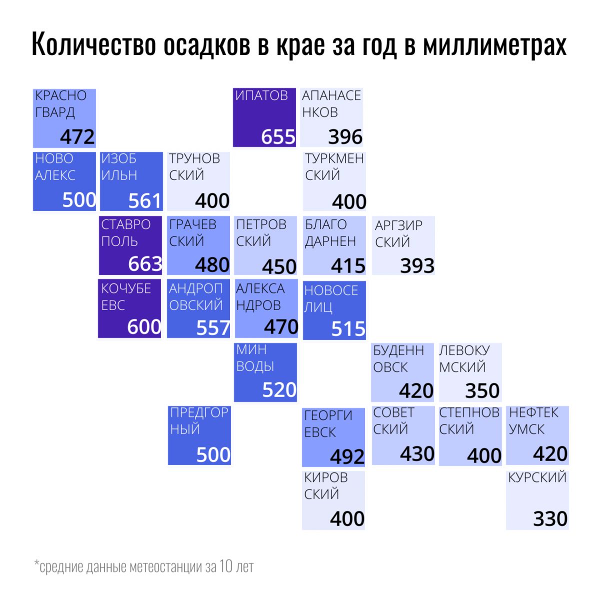 «Среднегодовое количество осадков в регионе – 300-400 мм, этого недостаточно для развития озимых и яровых культур, особенно в крайне засушливых и засушливых зонах Ставропольского края».