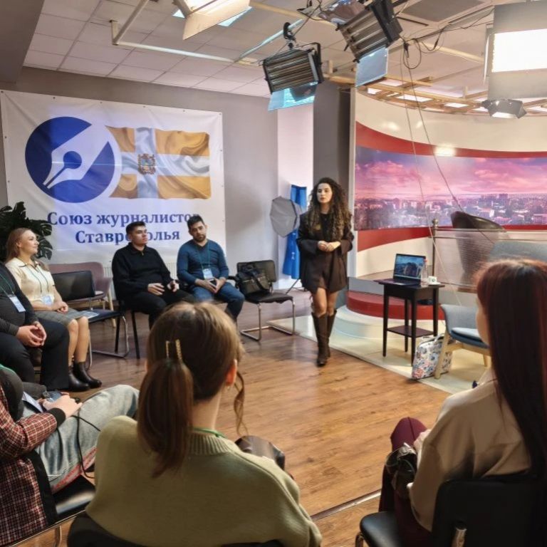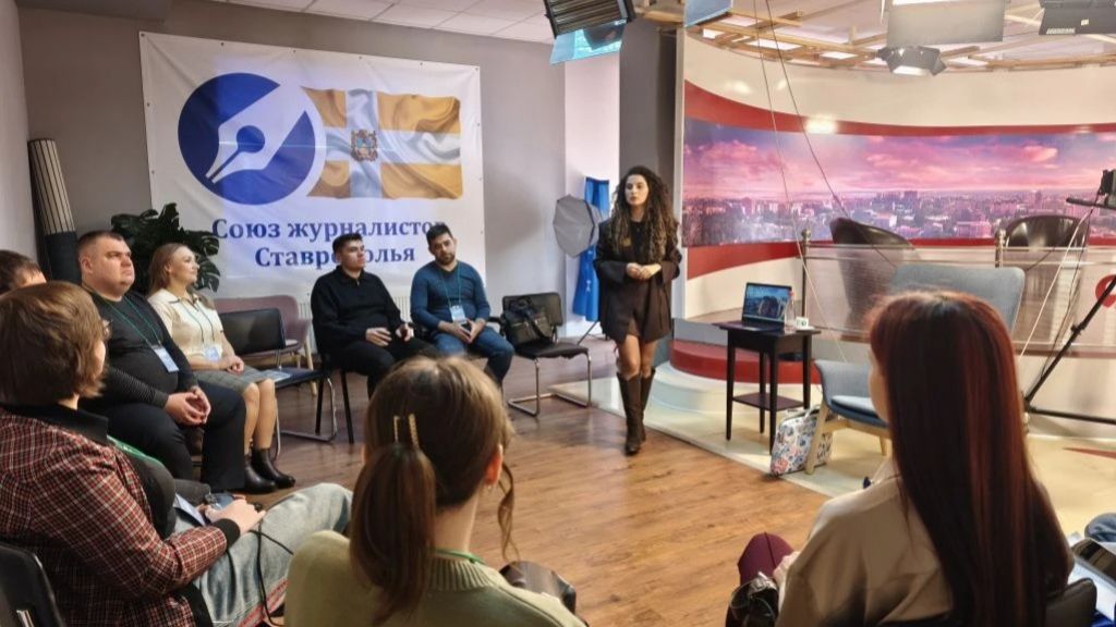 О специфике работы в телевизионных СМИ рассказал Денис Князев, заместитель директора ГТРК «Ставрополье». Участники обсудили создание новостных программ, особенности работы с острыми темами и современные тренды в медиасфере.