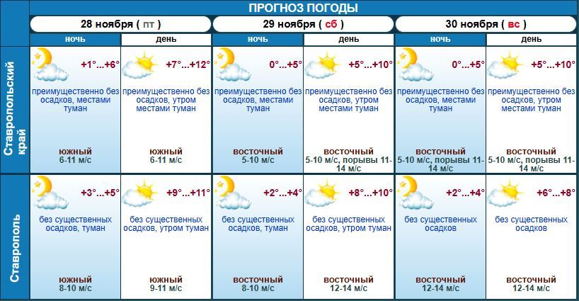 На предстоящих выходных осень будет прощаться с жителями Ставрополья до следующего года. Какая погода будет в крае 29 и 30 ноября, рассказали в региональном Гидрометцентре.