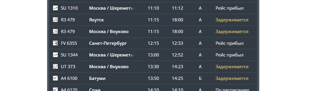 Прилетят позже девять самолетов – по одному из Якутска, Иваново, Екатеринбурга, Уфы, Самары, Батуми, а также три из Москвы (два из Внуково и лдин из Домодедово).