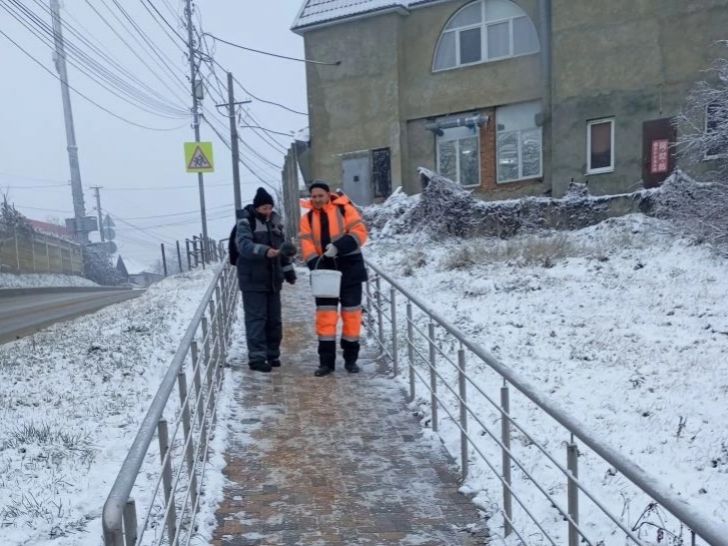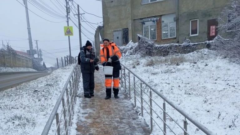 Для предотвращения образования гололеда за ночь в Ставрополе использовали более 500 тонн песка и соли.