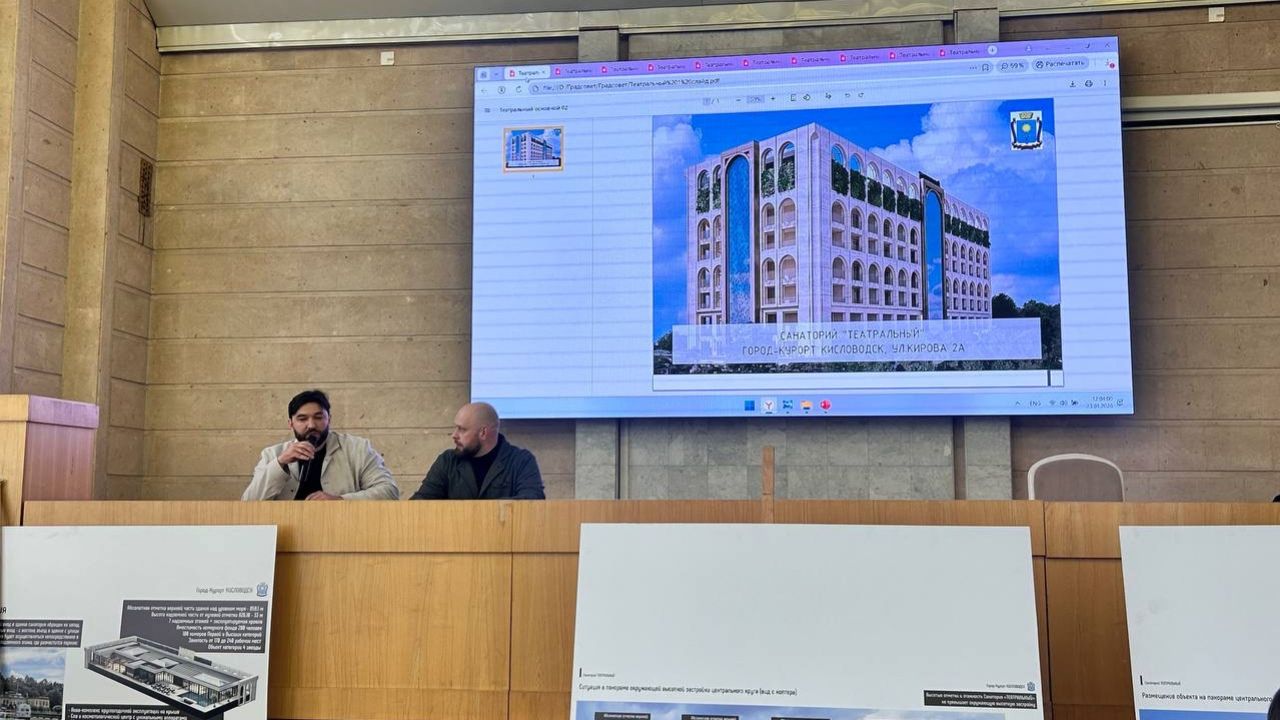 Градсовет Кисловодска рассмотрел проект санатория «Театральный» на месте бывшего одноименного ресторана на ул. Кирова, 2а. Члены градсовета ознакомились с представленными архитектурно-планировочными решениями и задали разработчикам вопросы по ключевым параметрам проекта, транспортной схеме и организации парковок, а также по благоустройству и интеграции объекта в сложившуюся застройку центральной части города.