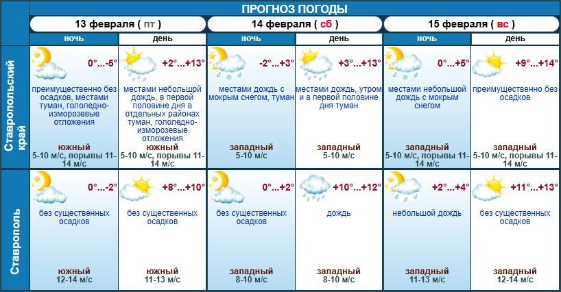 Стал известен прогноз погоды на Ставрополье на 14 и 15 февраля. Его опубликовали на сайте краевого Гидрометценра.