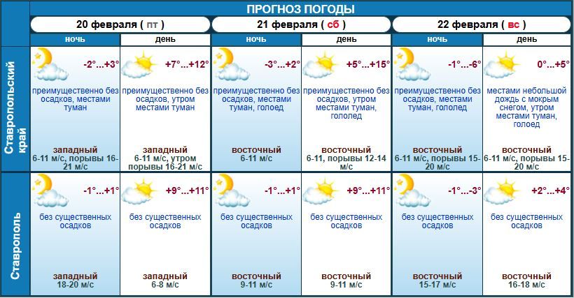 Ставропольский Гидрометцентр опубликовал точный прогноз погоды в крае на 21 и 22 февраля. Предстоящие выходные обещают быть переменчивыми.