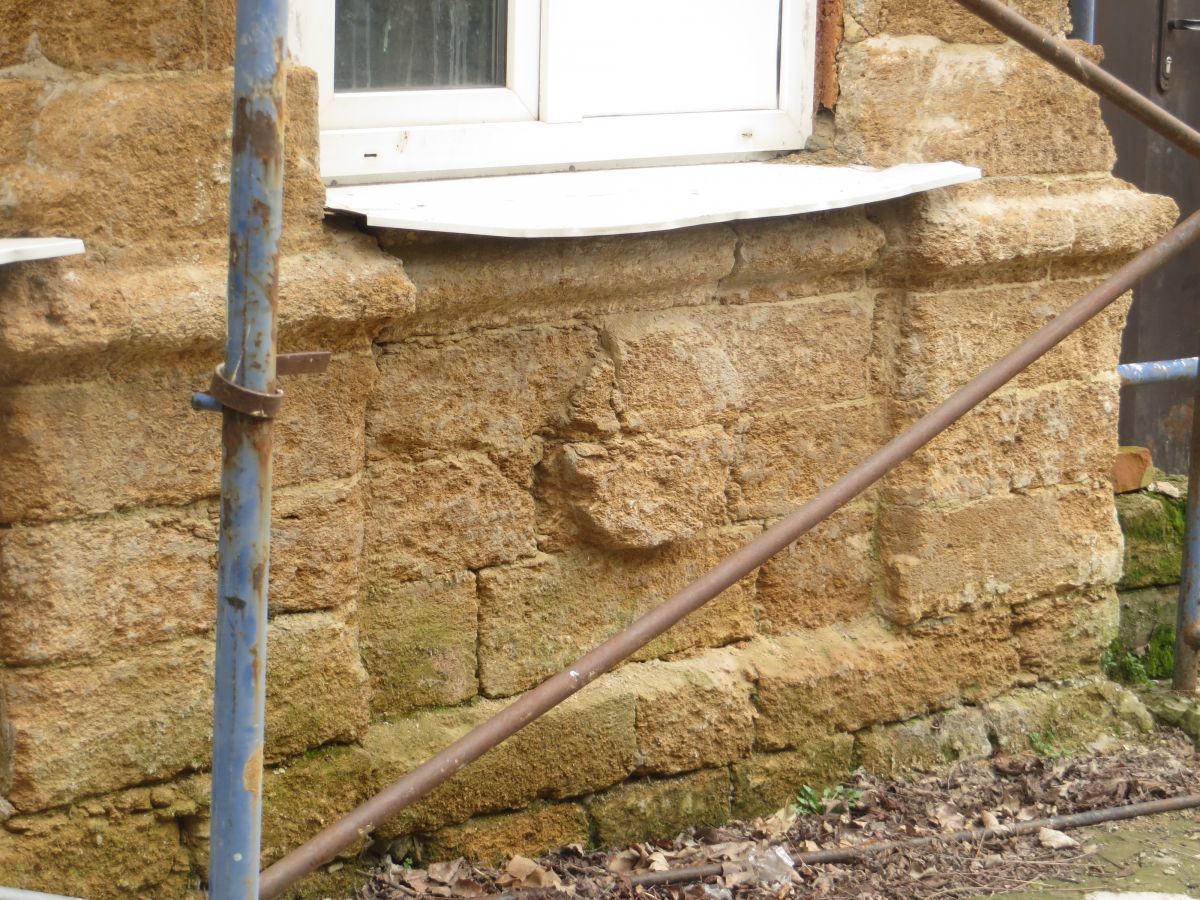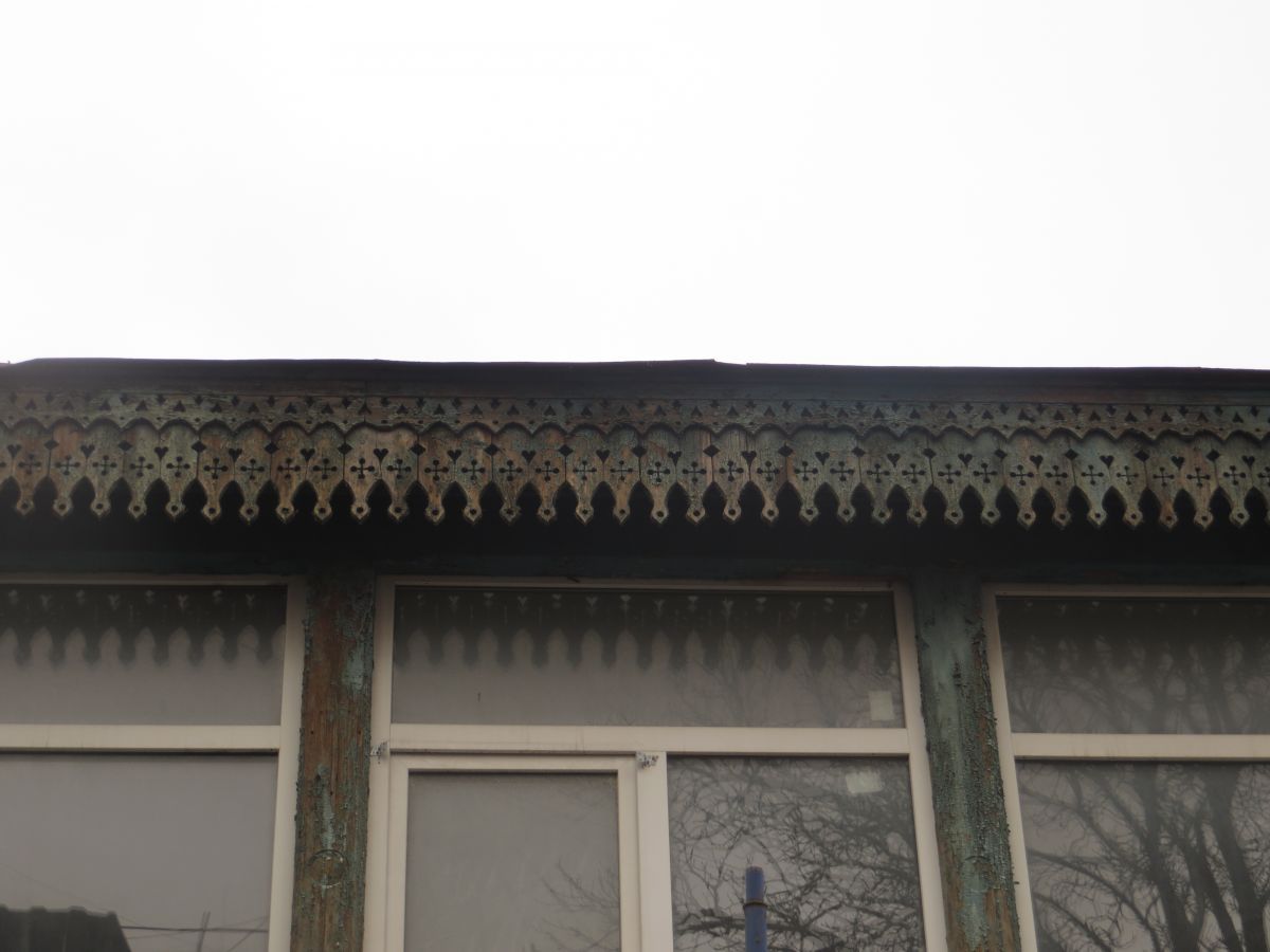 Александр Жердев: «В доме на улице Шаумяна, 37 сочетаются элементы традиционного деревянного и каменного зодчества. Вверху знаки неба (воды) в виде стилизованной женской груди. Внизу знаки солнца, вписанные в прямоугольник — знак земли. Солярная символика используется в оформлении двери»